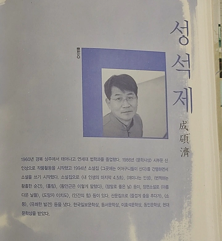 성석제 작가는 두 자리 숫자의 나이가 되었을 때, 우연히 읽은 <흙손 엄마>라는 시에서 문학이 가지고 있는 본질, 보편의 감동에 닿았다. 그 어린아이는 난생처음 경험하는 감정, 감각에 당황한다...... 어린 소년은 언제부터인지 모르게 감동과 느낌을 재현하기 위해 애를 쓰게 된다. 문자와 단어와 문장을 만들고 연결하고 풀었다 재조합하는 일을 하기 시작한 것이다. 이 첫 번째 감동은 작가의 문학적 체험의 원형이 되고 언어예술에서 받는 감동의 원형이 기도 했다.