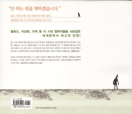 우리는 월 스트리트 00번지 2층에 위치한 한 변호사 사무실에서 근무하게 되는 필경사 '바틀비'를 만나면서,