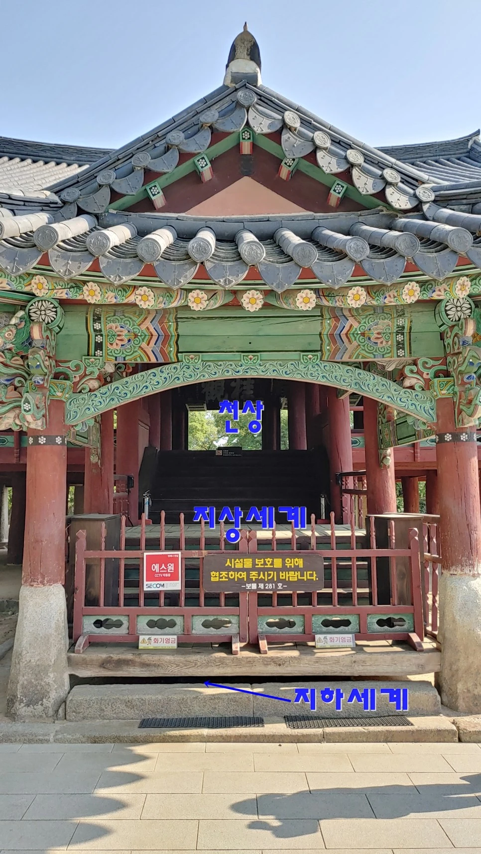 계단을 다 오르면 '계관'이라 쓰인 편액이 보이는 곳이 천상을 뜻한다.
