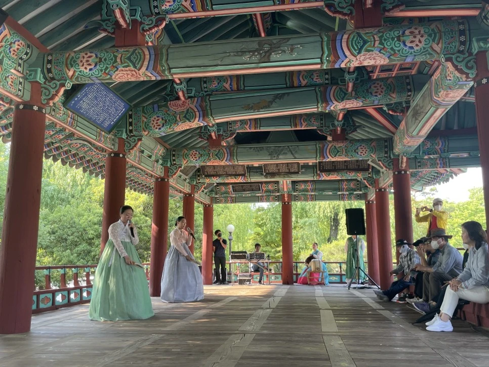 광원루원 초입에서 바라보던 완월정에 직접 오르니, '성주풀이' '남원산성', '진도아리랑' 등의 남도 창을 감상할 수 있는 기쁨도 누린다.