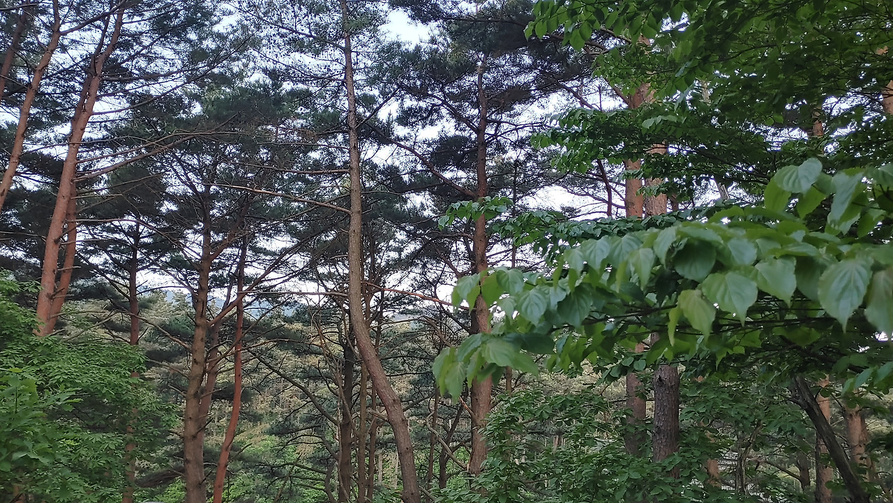반달가슴곰과는 마주치고 싶지 않은 평화로운 이른 아침이다.