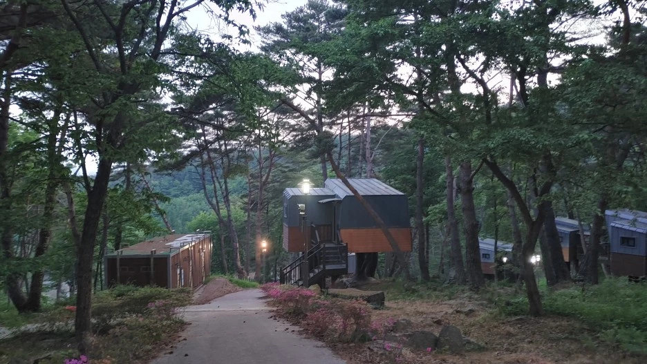 백두대간 트리하우스에 도착하니, 하늘엔 노을이 물들기 시작하고, LED 가로등에선 투명한 흰빛이 퍼져 지리산 자락을 밝힌다.