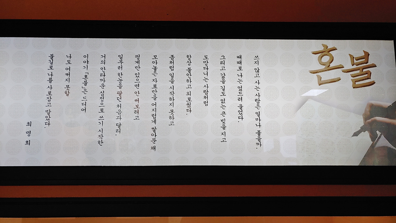 최명희 작가의 혼과 소설 『혼불』이 그대로 녹아내린 전시관을 둘러보면서 숙연함을 지울 수 없었다.