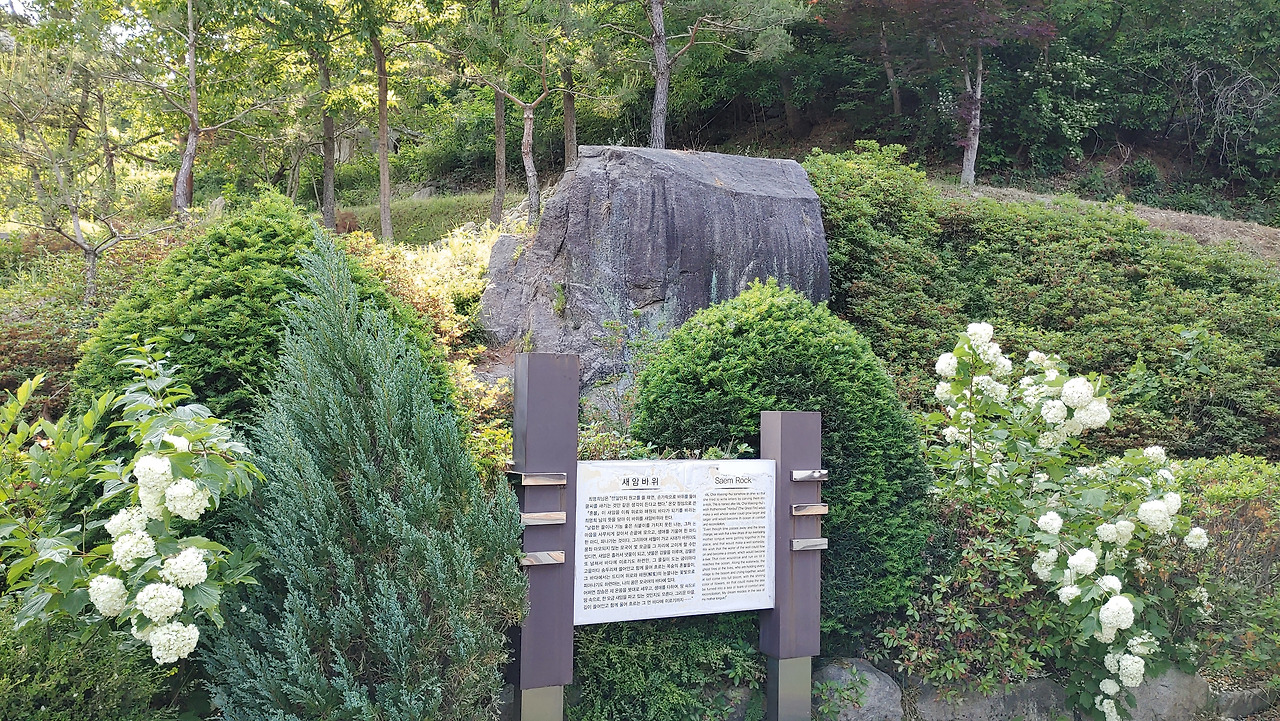 최명희 작가는 "웬일인지 원고를 쓸 때면, 손가락으로 바위를 뚫어 글씨를 새기는 것만 같은 생각이 든다."라고 했다. 온갖 정성으로 쓴 『혼불』이 새암을 이뤄 위로와 해원의 바다가 되길 바라는 작가의 뜻을 담아 새암 바위라 부른다.