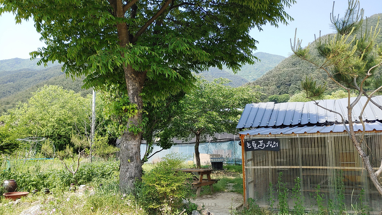 오전엔 '수토산방'에 들려 인터뷰를 마치고, 자동차로 등구재 황토방 민박 식당에 도착했다.