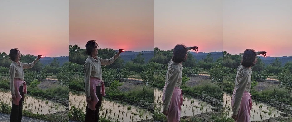 한동안 하릴없이 늘어져 있던 손이 지는 해를 잡기 위해 잠시 바삐 움직이며 행복했던 순간!