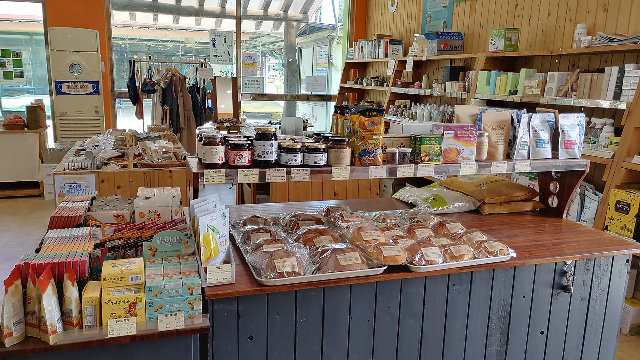 친환경 농산물을 파는 '느티나무'는 실상사 입구 왼쪽으로 있다. 매장 입구 오른쪽 한편에 '빵아제'가 입주해 있다.