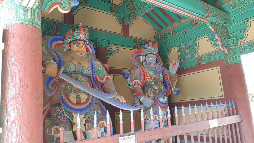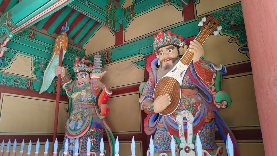 사대천왕, 증장천왕과 광목천왕 / 지국천왕과 다문천왕 천왕문을 나서면, 오른쪽으로 또 다른 형태의 공든 탑 돌무더기와 범종각이 보인다.