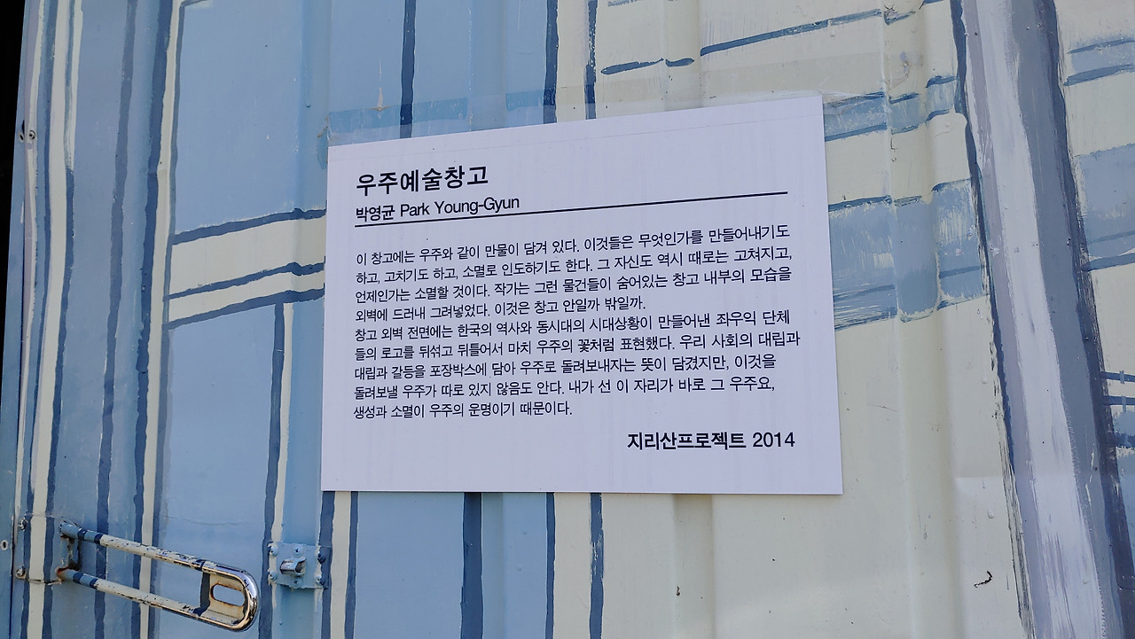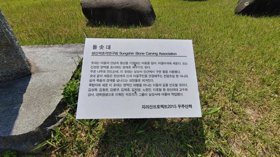 지리산 프로젝트 2014 성신 석 조각 연구회 작업으로 이루어낸 누워있는 돌 장승의 편안한 모습을 바라보며 우리 사회의 안녕을 기원하게 된다.
