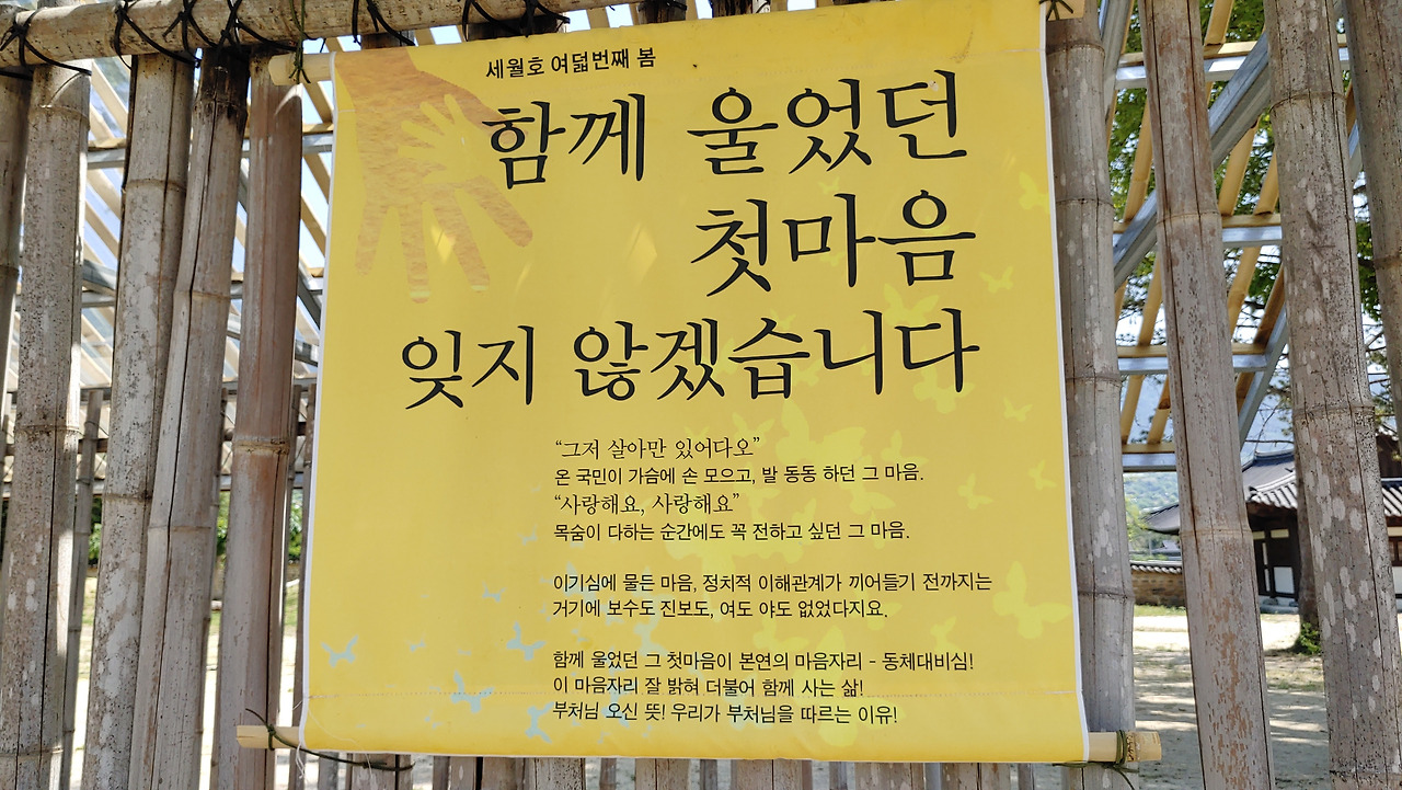 실낱같이 부드러운 바람에도 미동하는 노란 리본들이 멀리서도 선명하다.