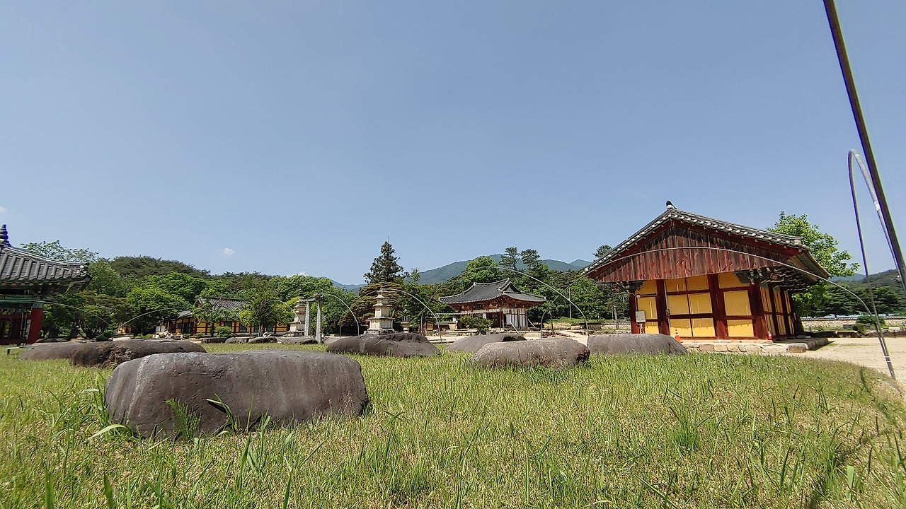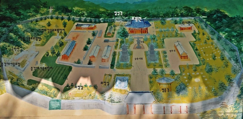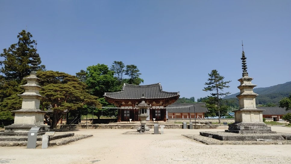 가운데 보광전과 석등, 양쪽으로 삼층석탑