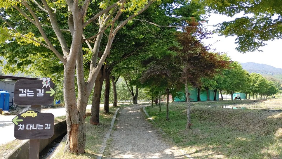 해탈교를 건너 가면, 오른쪽으로 실상사 농장 가는 길이 보인다.