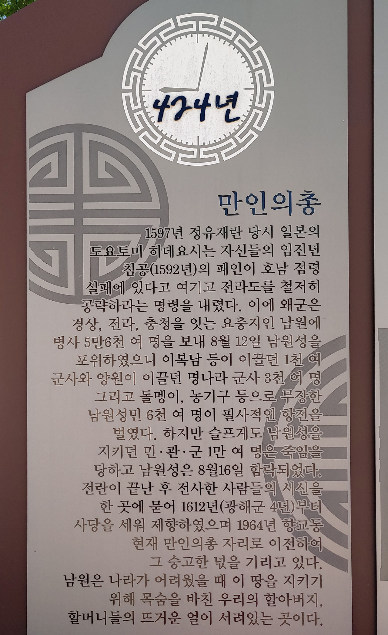 당시 남원읍에서 만 명이나 되는 사람들이 나라를 지키려다 왜구 의해 아까운 목숨을 잃었다고 생각하니, 울분이 솟는다.