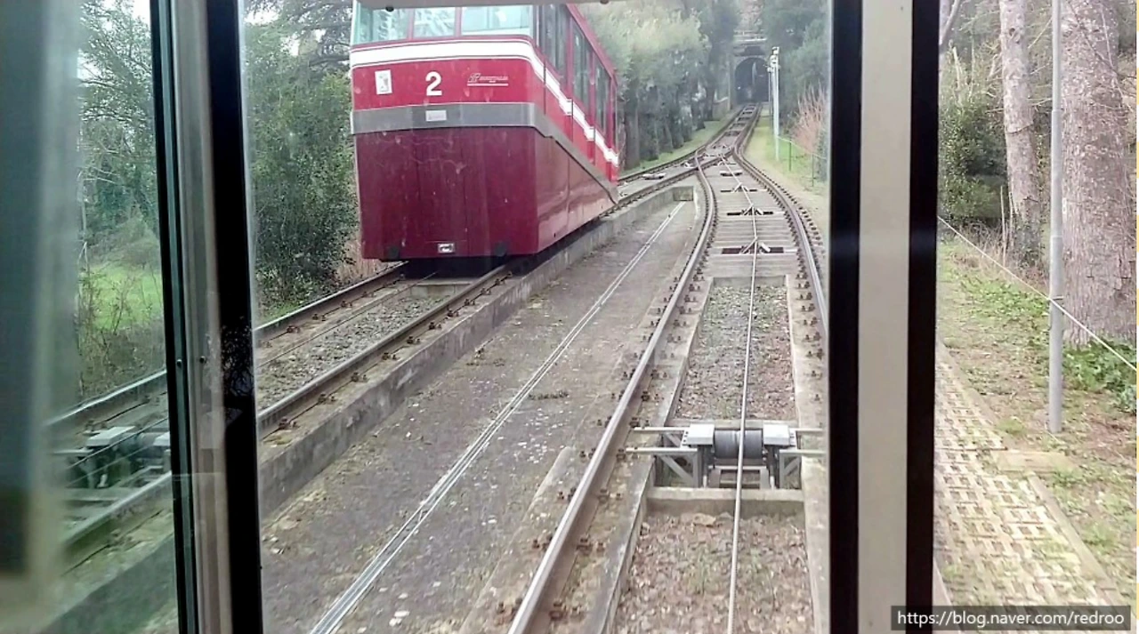 이런 경사면 철도 푸니쿨라도 레일 따라 설치된 케이블 선으로 전차를 움직이는 원리라니, 케이블카가 맞긴 맞는가 보다.
