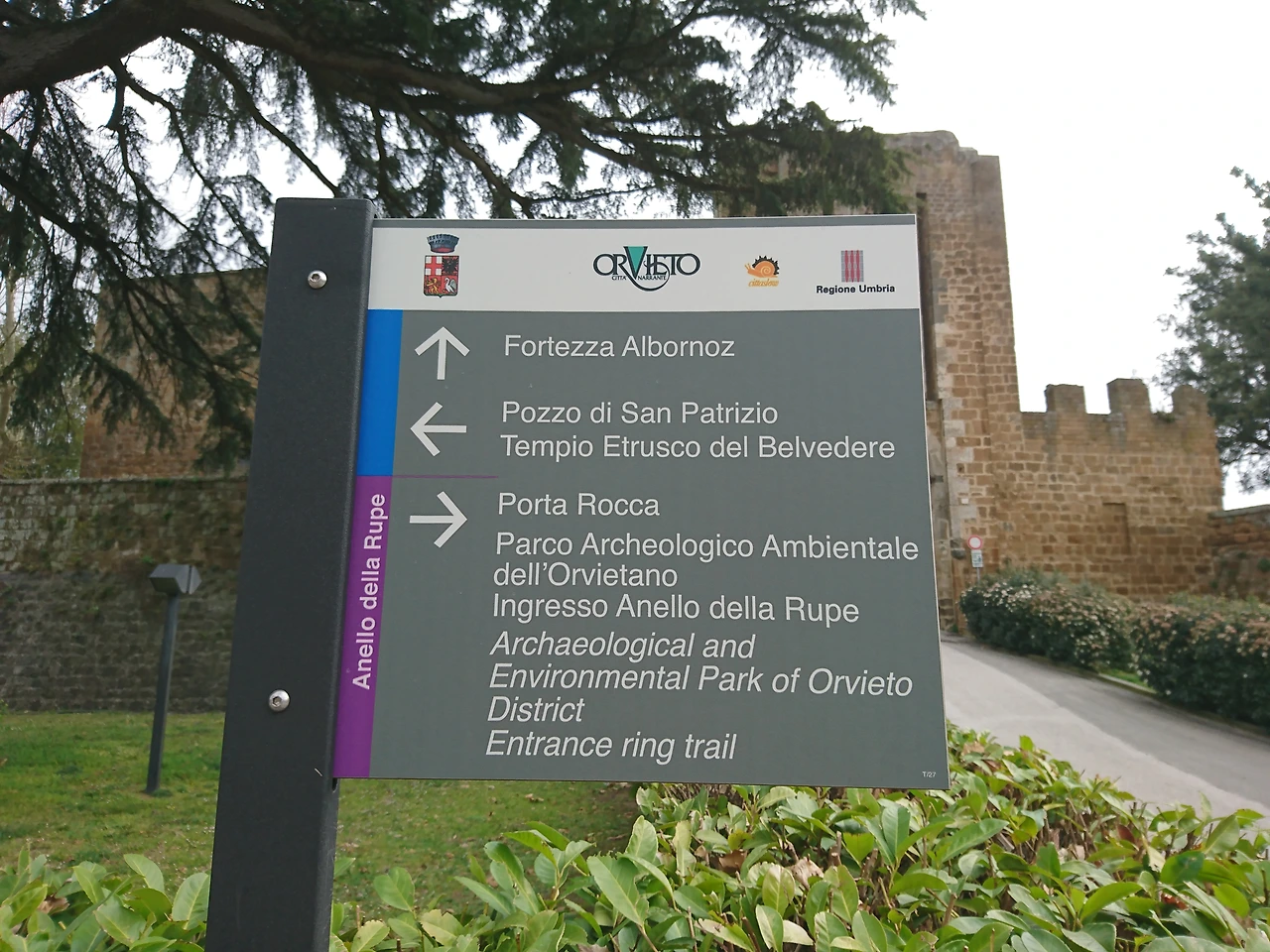 사진 속, 뒤에 보이는 문으로 내려가 중세 성벽을 따라 걸으면서 멋진 풍경을 즐길 수 있다. 오르비에토 주요 명소 중 하나인 성 패트릭 우물로 걸어가는 길이다.