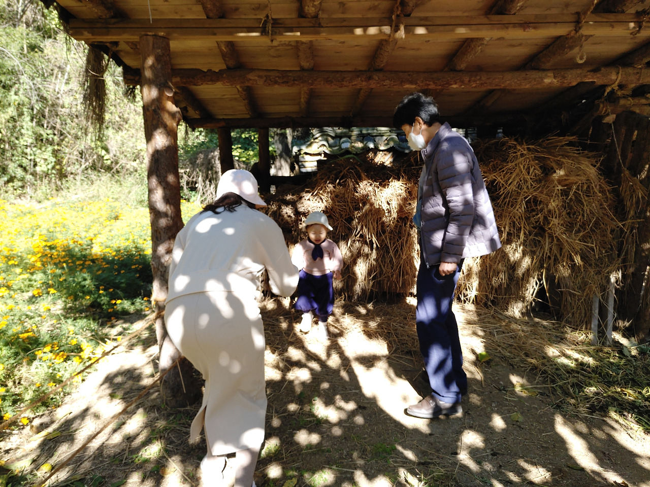 하늬바람과 가을 햇살 사이로 할아버지랑 꾸미가 나란히 걸어가는 흙길