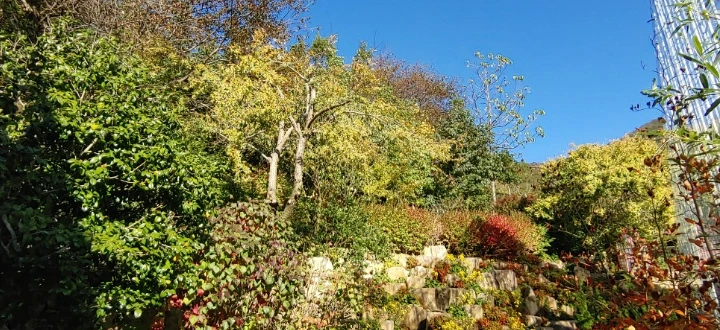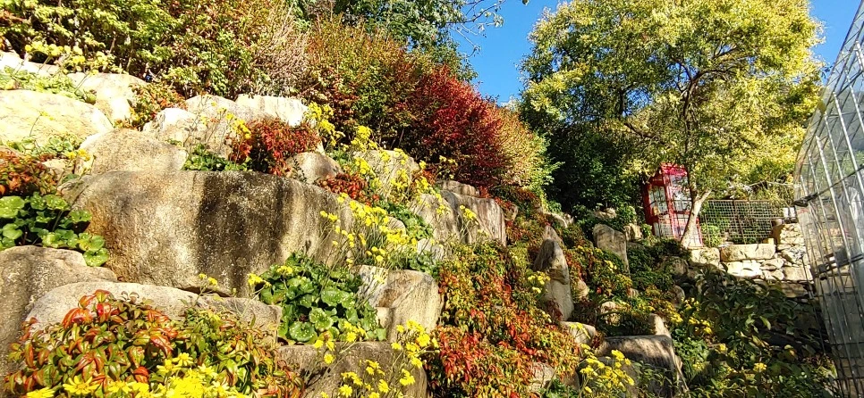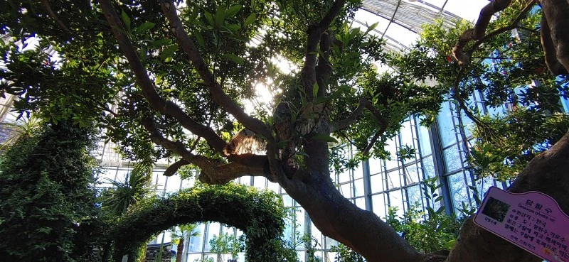 온실 속 무성한 나무 사이로 스며드는 가을 햇살이 눈부시다.