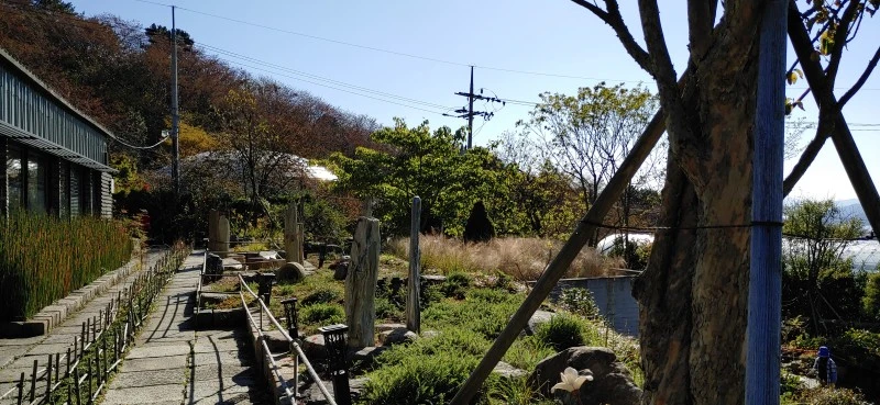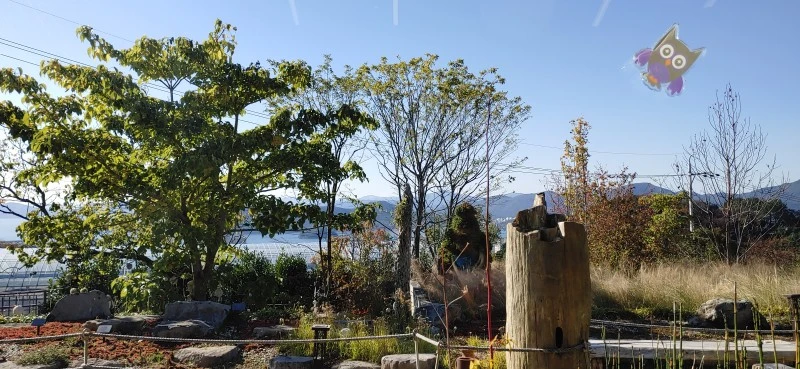 진해 보타닉 뮤지엄 언덕에서 바라보이는 남해와 먼 산이 한 폭 그림 같다.