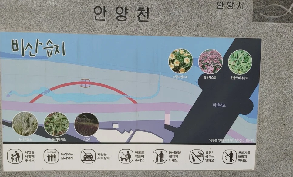 2006년 연안습지 최초로 람사르협약에 등록된 순천만 갈대밭, 태안군 신두리 해안사구와 두웅습지, 창원 주남저수지 습지, 서울 송파구 방이 습지 등이 우리에게 많이 알려진 습지들이지만, 안양천에도 비산 습지가 있어 산책하며 지나칠 때마다 주의 깊게 들여다보게 된다.