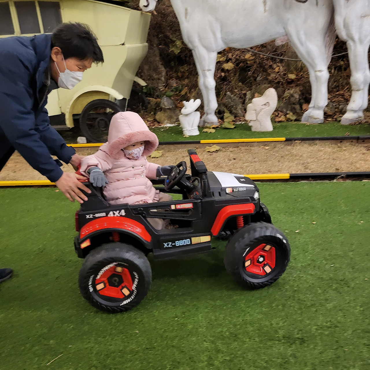 뜰에 대기 중이던 사륜구동 자동차도 타보고, 트랙터도 직접 운전하며 신났다.