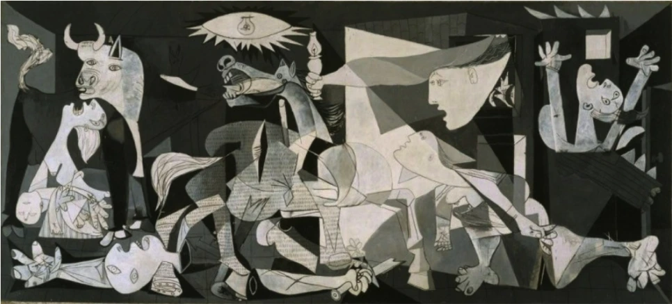 〈게르니카〉는 스페인 내전 당시 나치가 스페인 게르니카 지역 일대를 1937년 4월 26일 24대의 비행기로 폭격하는 참상을 신문으로 보고 그린 명작이다.