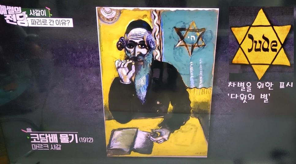 서구사회는 다양한 방식으로 유대인들을 차별했다. 샤갈은 차별의 유년 시절을 보낸다. 당시 차별의 상징적인 표시인 '유대인의 별'이 있다.