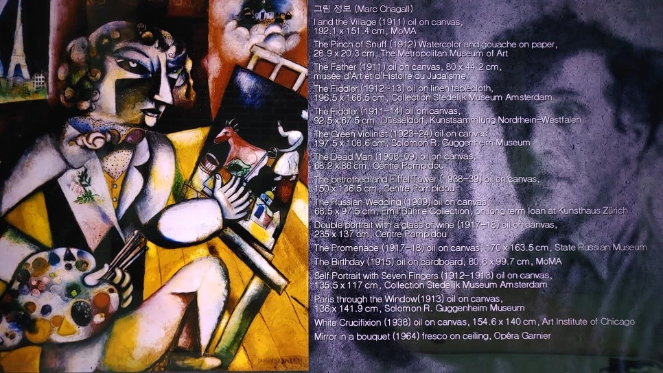 지난주 일요일 KBS 1 '예썰의 전당'에서는 따뜻하고 아름다운 색으로 세상을 품은 샤갈의 작품세계를 마주했다. 알록달록 색감이 도드라져 보이는 동화 같은 풍경의 <나와 마을>은 들여다볼수록 편안하고 행복해지는 작품이다. 이 작품은 뉴욕현대미술관 중앙에 전시되어 있다.