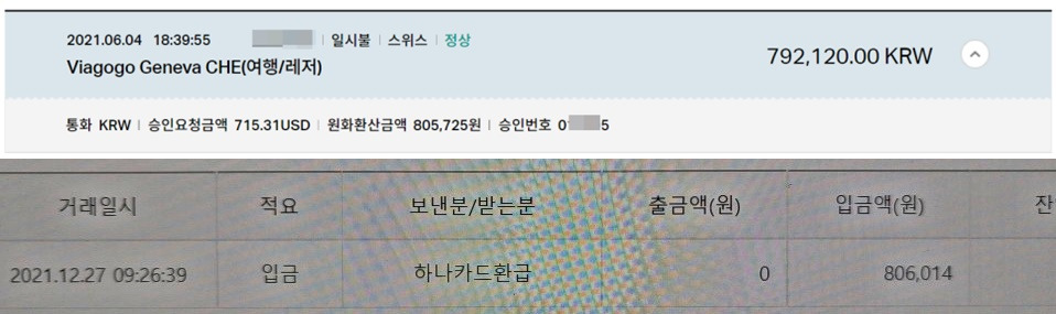 * 실제, 하나카드는 110일 경과된 해외 결제 사안도 접수해 주었다.