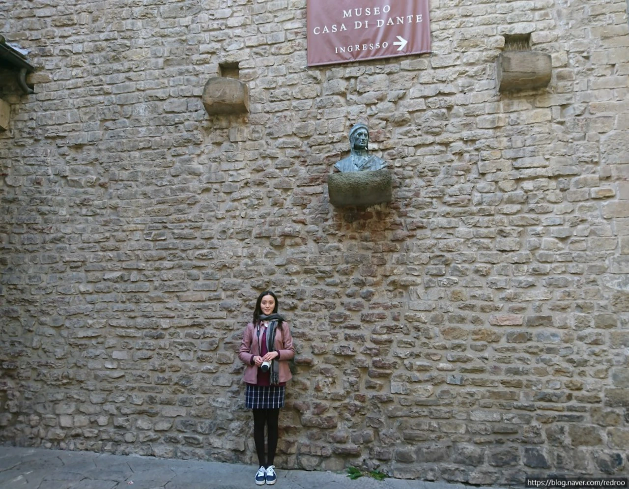 '단테의 집' 안을 잠시 들여다보고 박물관 건물 코너를 돌자, 단테의 흉상이 돌담 벼락 한가운데서 좁은 골목을 무심하게 내려다보고 있다.