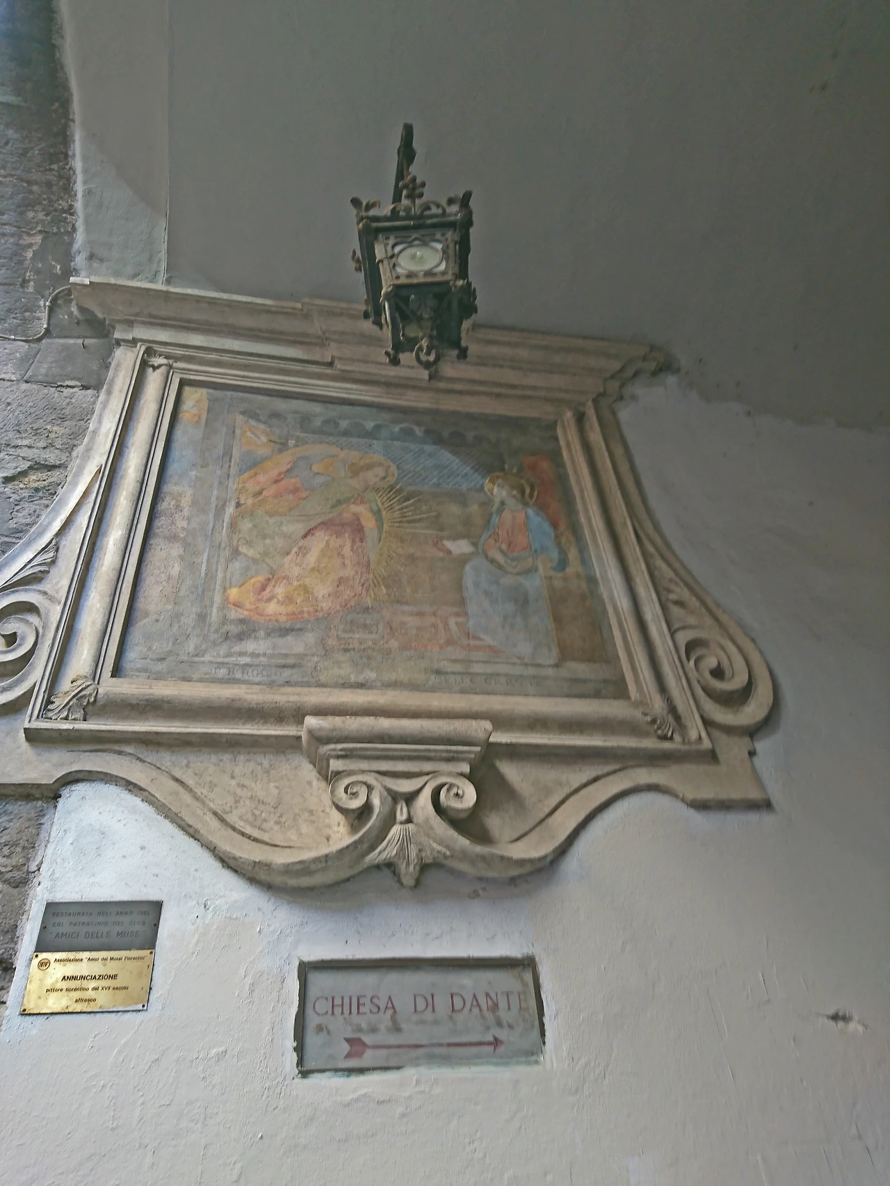 '단테 교회'로 향하는 화살 표시에서 느껴지는 소박함
