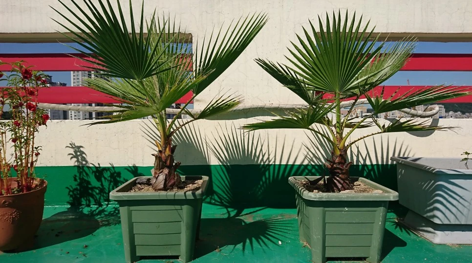 2015년 이른 봄, 작은 묘목으로 만났던 워싱터야자가 생각난다.