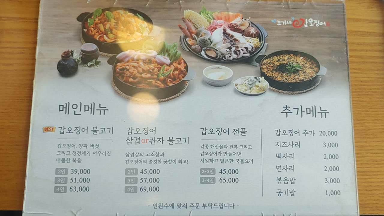 메뉴 / 갑오징어 전골 / 조가네 갑오징어 실내