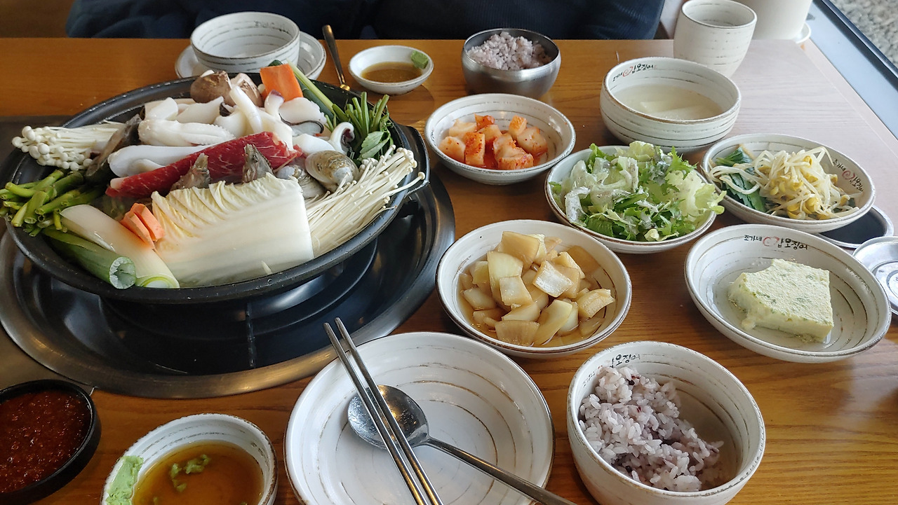 갑오징어 전골로 조금 늦은 점심 식사를 즐기자, 기분이 더 업된다.