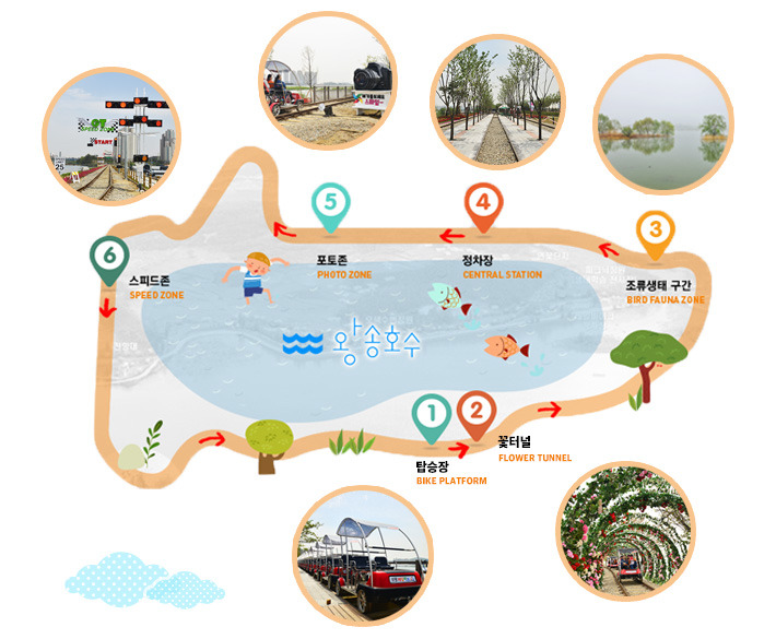 호반의 평화로운 정취를 느낄 수 있는 휴식처로 손색이 없는 곳이지만, 워낙 넓은 곳이니 구간을 정해 둘러보는 것이 좋다. 가족 나들이라면 레솔레파크 쪽이 좋고, 호젓하게 산책을 즐기고 싶다면 의왕레일바이크 정차장 인근이 더 좋다.