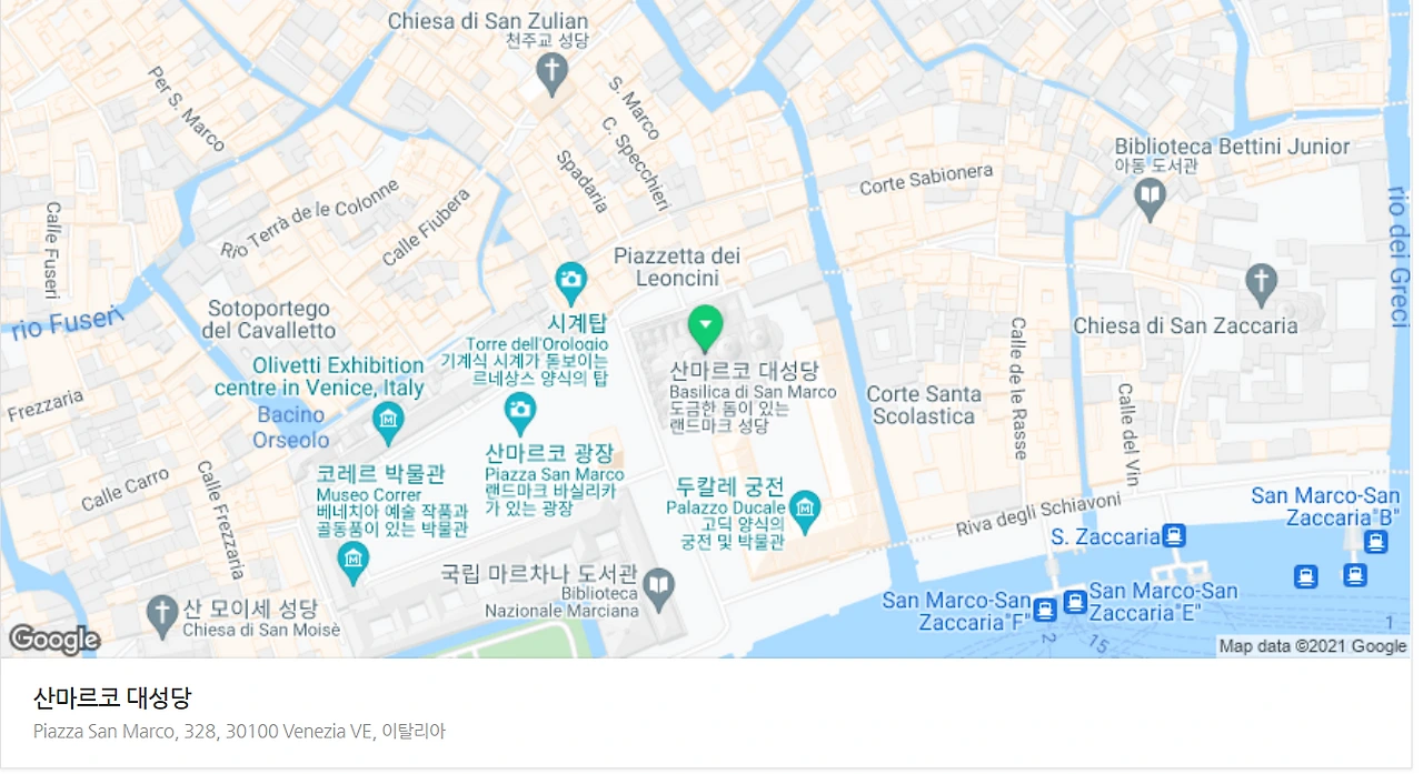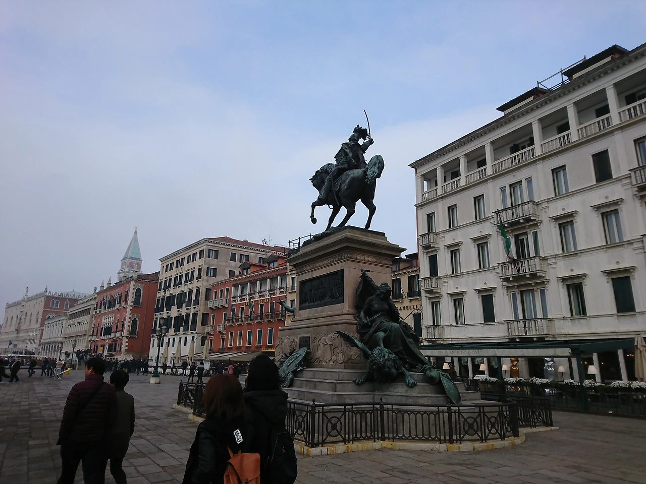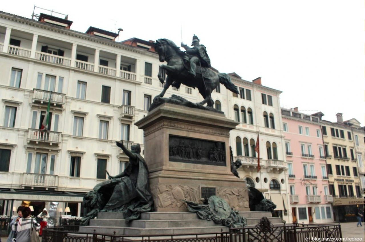 이곳 산 마르코 광장 입구에 서있는 성 조지상은 수호성인이 바뀌기 이전에 세워졌던 것이다. 성 조지의 잘못도 아니고, 당시 세력들끼리 전쟁이었으니 옛 수호성인 조각상까지 내려칠 이유는 없다는 것이 정답이다. 베네치아 수호성인은 성 마르코가 맞다.