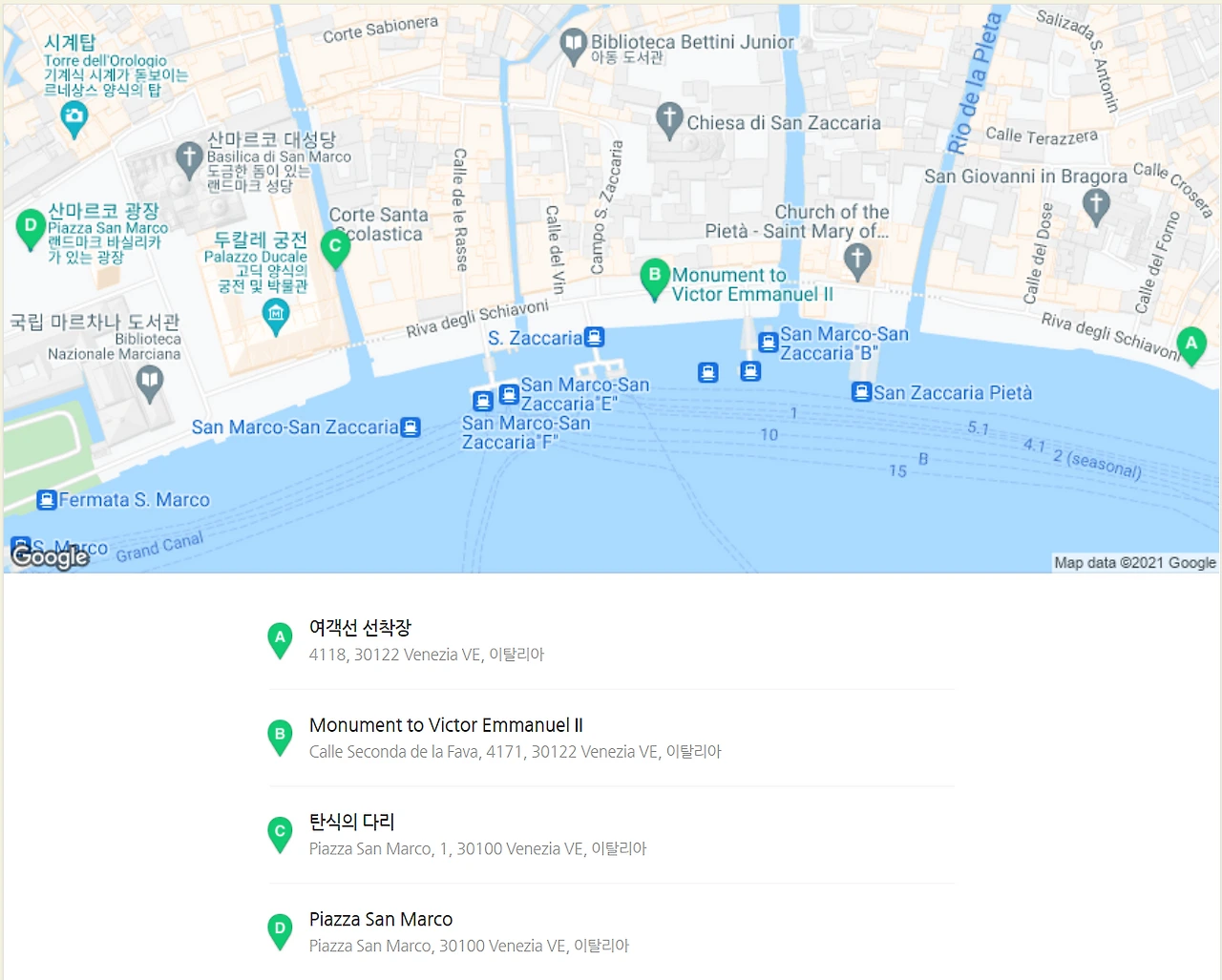 우리를 태운 여객선이 도착한 곳은 관광 중심지인 산 마르코 광장 남쪽이다. 이곳은 선착장이 길게 이어져 있다.
