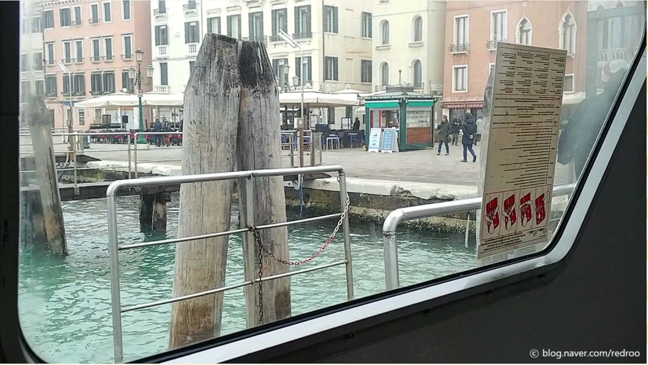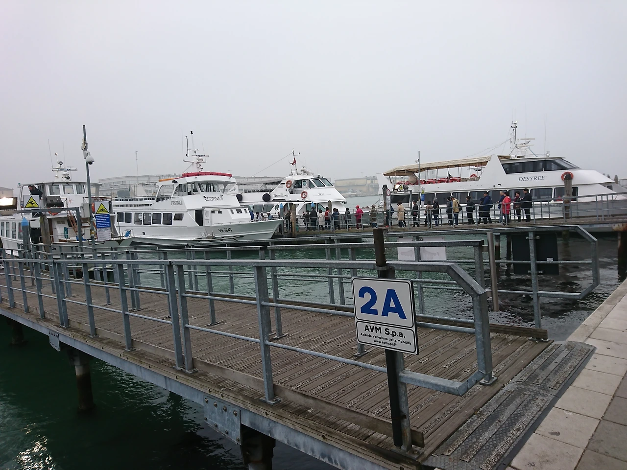 메스트레 지역 선착장 리알토 섬(본섬)으로 가기 위해서는 기차를 타거나 페리를 타고 들어간다. 이른 아침(8시경), 베네치아 구도심 관광을 위해 전세버스를 타고 메스트레 선착장에 도착. 구도심인 본섬으로 향하는 페리선에 몸을 싣는다. 배는 산 마르코 광장으로 가기 위해 설레는 사람들을 가득 태우고 달리기 시작한다.