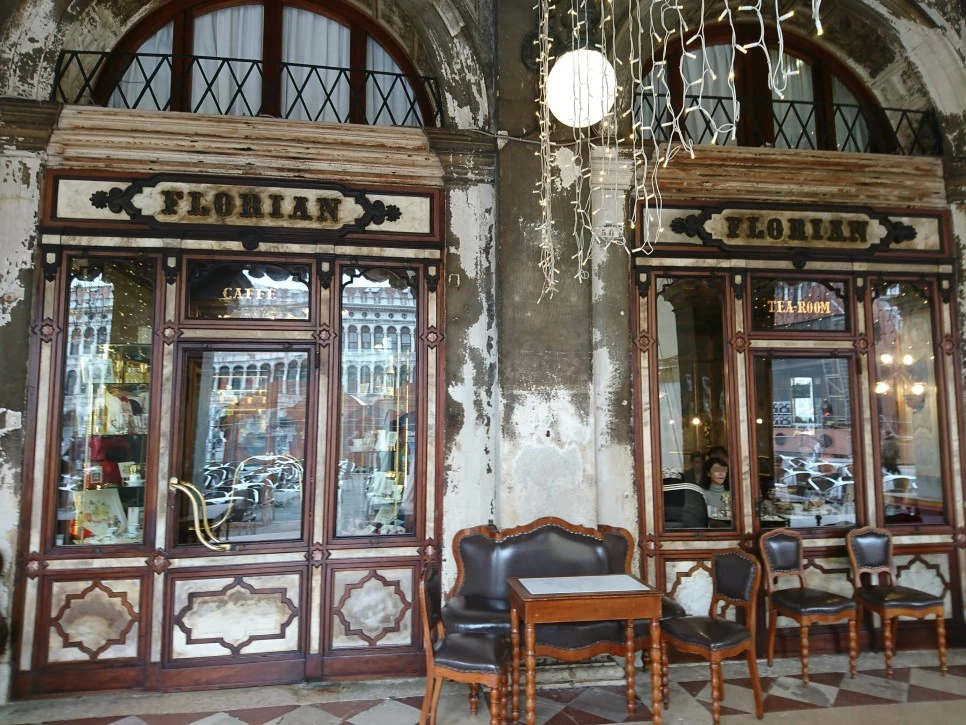 아래 '카페 플로리안' 사진은 우리가 '카페 라베나'에서 휴식을 취한 후, 다시 지나칠 때 찍은 것이다. 30분~40분 전엔 긴 줄을 서서 기다리는 사람들로 플로리안 앞은 북새통이었다.