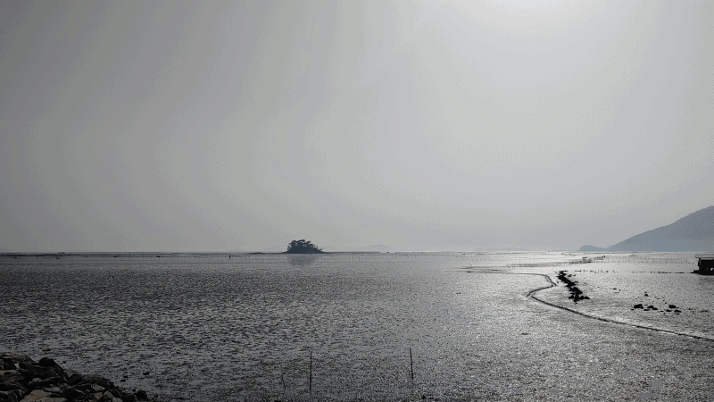 꼭 일몰 순간이 아니더라도 풍요로운 갯벌, 은빛으로 눈부신 남해는 충분히 아름다운 곳이지만, 일몰 시간이 아니 아쉬움이 밀물처럼 밀려든다.