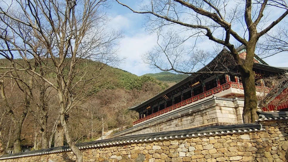 중문인 천왕문을 지나 대웅전과 각황전을 가기 전에 거쳐야 하는 보제루도 역시 동쪽으로 돌아가야 한다.