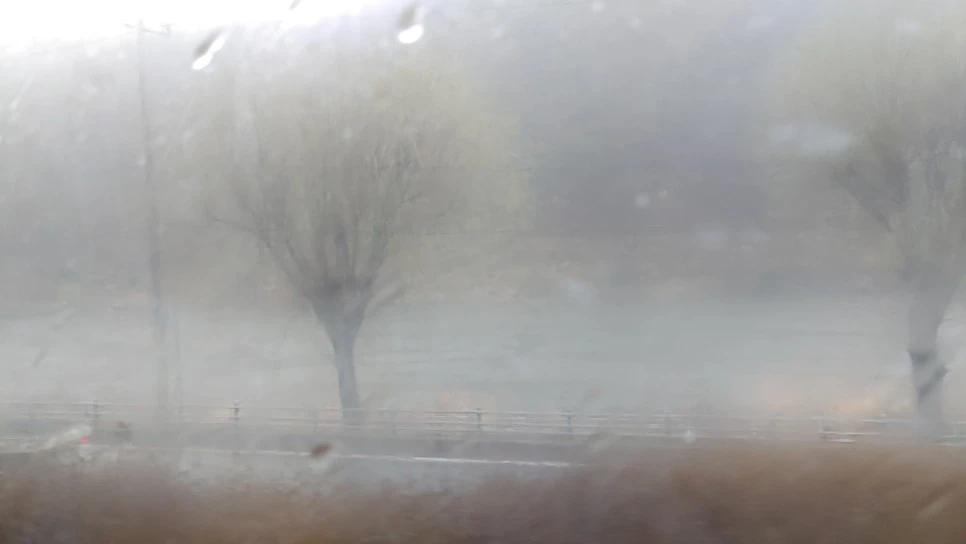 퍼붓는 빗줄기와 차량 안 습한 공기로 차창에는 공중목욕탕의 수증기처럼 뿌연 김이 서린다.