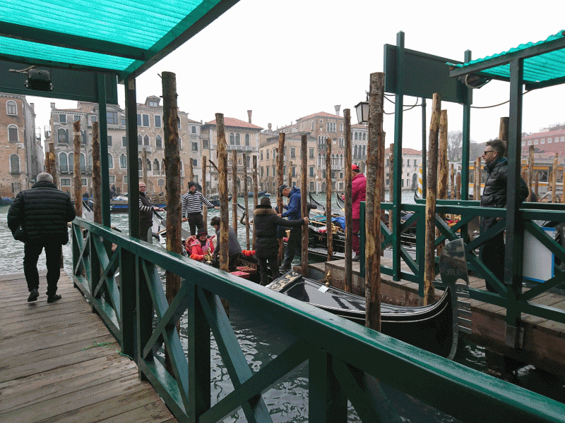 계속 들고나는 관광객들을 실어 나르기에도 웬만한 체력으로 힘에 부칠 듯하나, 곤돌라끼리 가까이 스쳐갈 때면, 곤돌리에 자기들끼리 몇 마디씩 주고받기도 하며 유유자적 노를 젓는다.