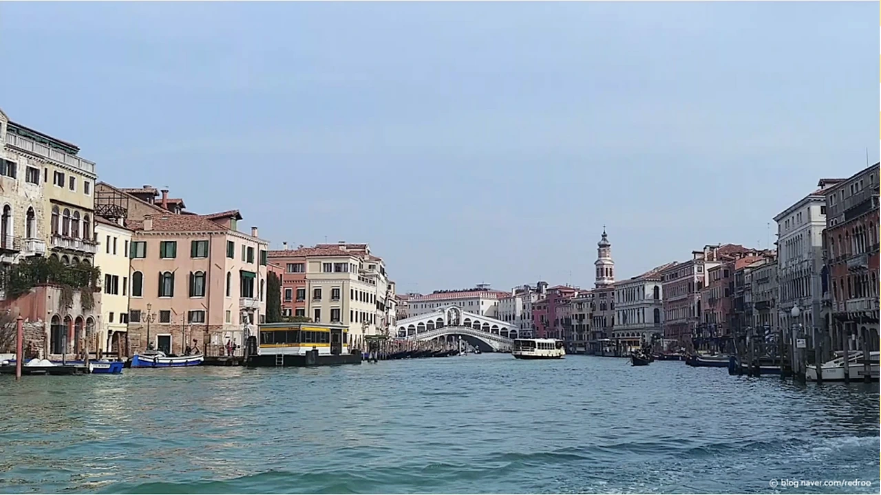 물의 도시 베네치아 운하(카날 그란테) 풍경은 고풍스러운 건축물과 어우러져 더 아름답다. 그러나 운하 수질은 일반 하수도만큼이나 오염되어있다니, 놀랍고 안타깝다. 대운하 쪽은 물 흐름이 빠르고 폭도 넓어 그나마 낫지만, 주택가로 흐르는 폭 좁은 운하의 수질은 하수도 수준이란다.