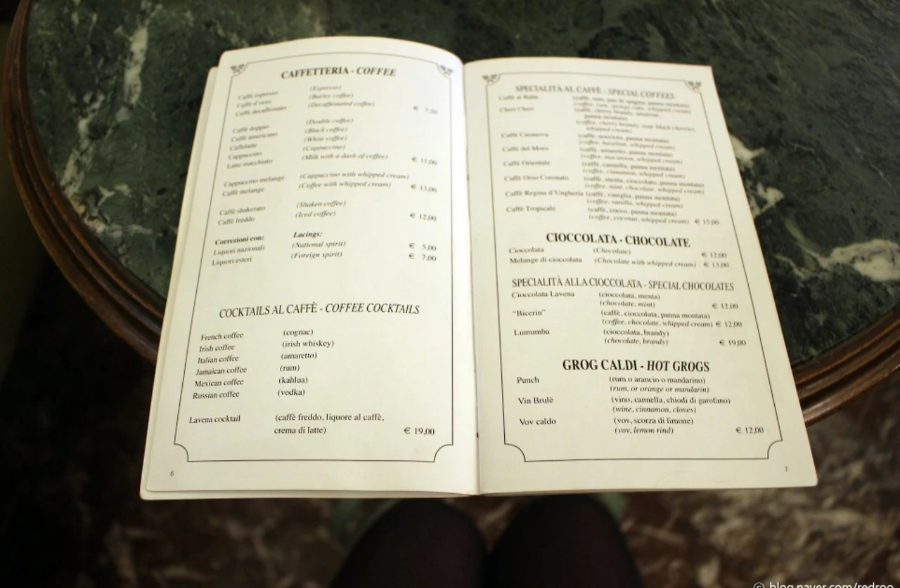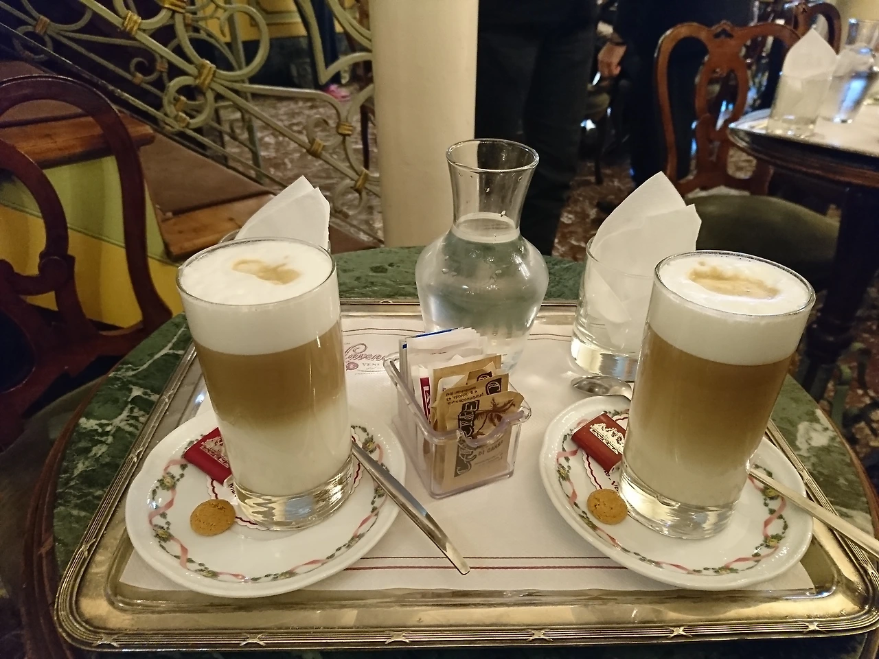 곤돌라 투어 후, 50여 분간 자유시간을 갖는다. 주주와 레드루는 산 마르코 광장에 있는 카페 '라베나'에서 이탈리아 전통 라테를 마시며, 여유로운 시간을 누린다. 라베나 1, 2층을 오르내리며 사진도 찍고, 들고 나는 사람들을 바라보기도 했다. 주주와 레드루도 마치 현지인 인양 무심한 듯 편하게 관광객들을 바라보고 있지 않는가!