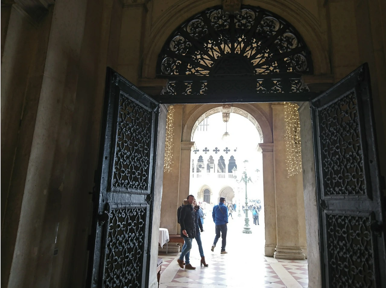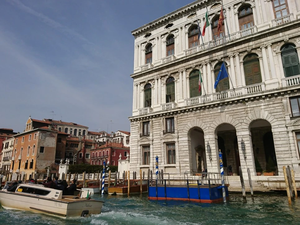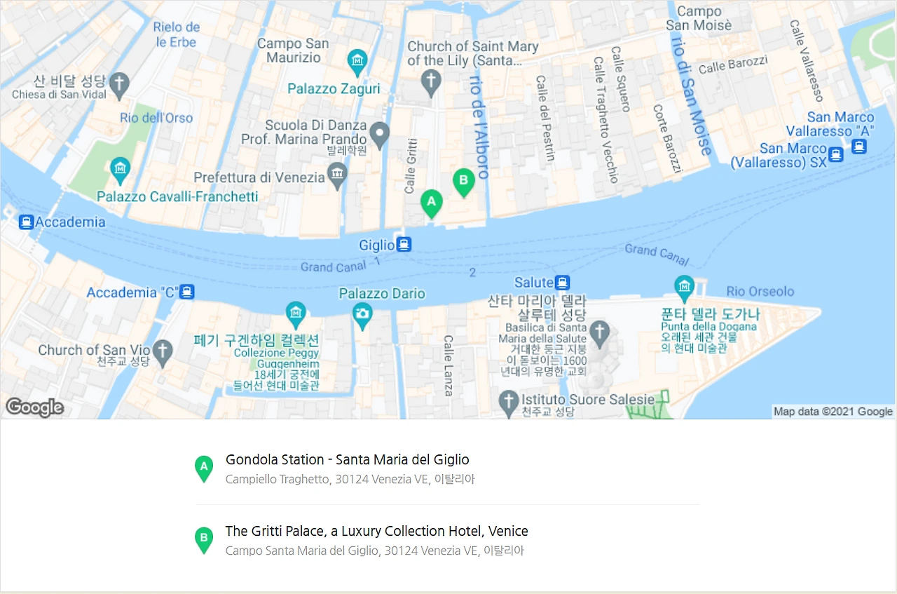 곤돌라 선착장을 나서면, 오른쪽으로 그리티 팰리스 호텔(Gritti Palace Hotel)이 보인다. 이 유서 깊은 호텔은 [노인과 바다]로 1953년 퓰리처상, 1954년 노벨 문학상을 수상한 미국 작가 헤밍웨이가 장기 체류하면서 작품을 집필했던 곳으로도 유명하다.