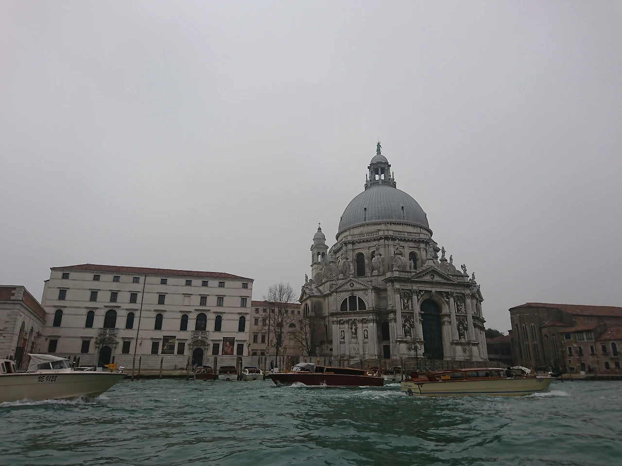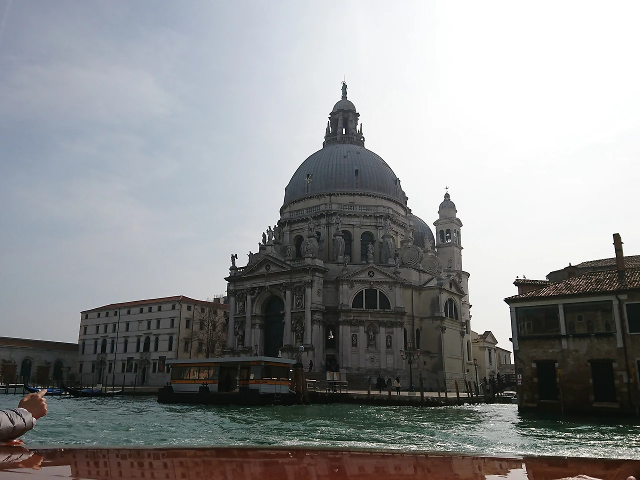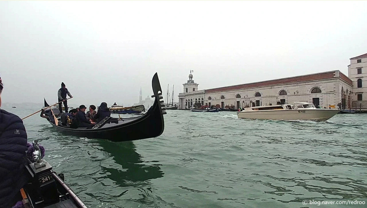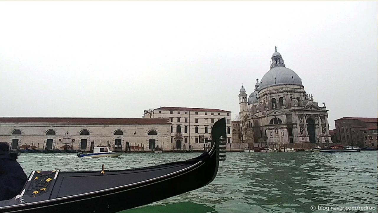 우리를 태운 곤돌라는 거대한 돔의 산타 마리아 델라 살루테 성당을 가까이 지난다. 나무 기단 위 석호에 저런 거대한 성당이 견뎌 온 오랜 세월이 그냥 대단해 보인다.