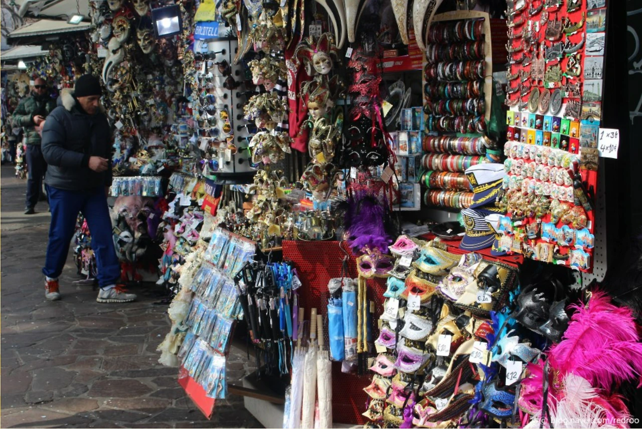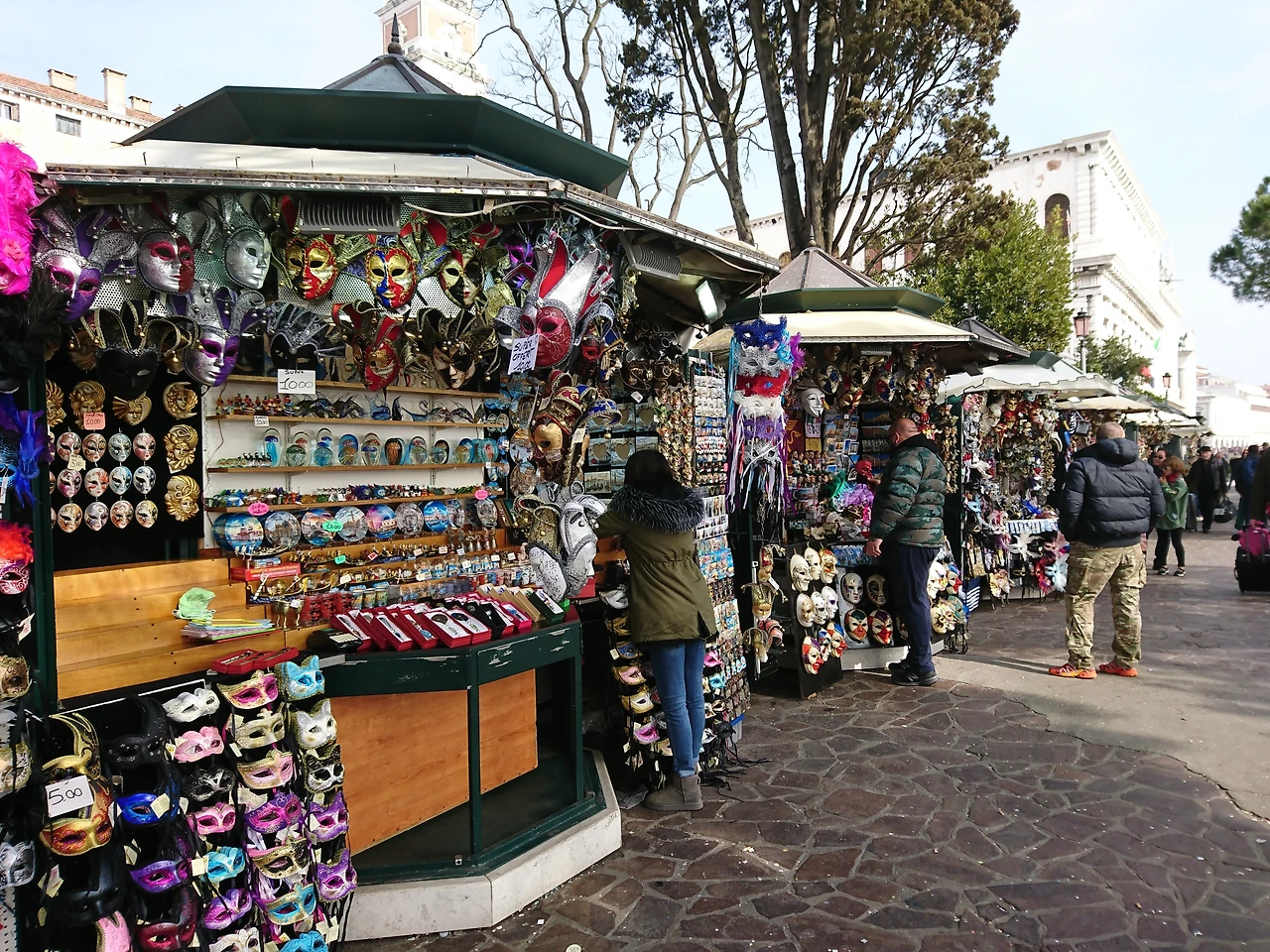 수상택시를 기다리는 동안 선착장 앞에 늘어서 있는 이동식 상점들을 둘러봤다. 카니발 가면, 공예품과 기념품들이 가득 진열되어 있다. 같은 듯 각기 다른 가면들은 텅 빈 눈동자를 채워 줄 자신만의 눈동자를 애타게 기다리고 있다. 사람들은 무심히 스쳐 지나가고, 축제가 끝난 베네치아 노점은 한가하다. 오늘, 빈 눈동자 가면들은 긴 기다림과 간절한 바람을 저 혼자 삭히고 있다.