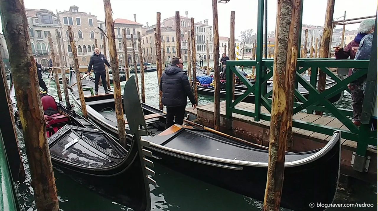 30m 넘는 커다란 노를 저어, 탑승 인원 6명을 태운채 육중한 곤돌라를 움직이려면 고되고 힘들 법도 한데, 이들은 프로다움과 고소득자의 여유로움이 온몸에 흘러넘친다. 하루에 열 번 남짓 30분 코스의 노를 저어 150만 원이란 거금을 번다니 놀랍기도 하고 부럽기도 하다.