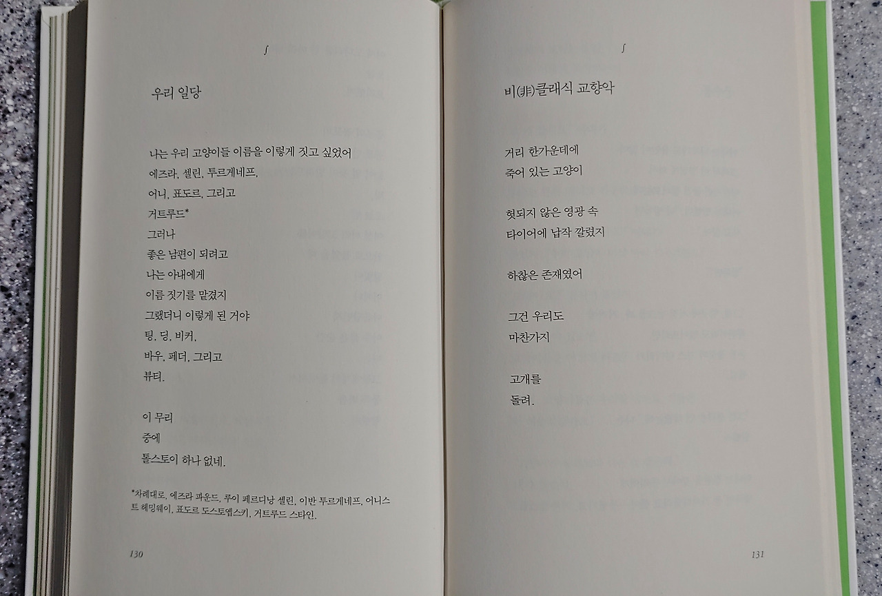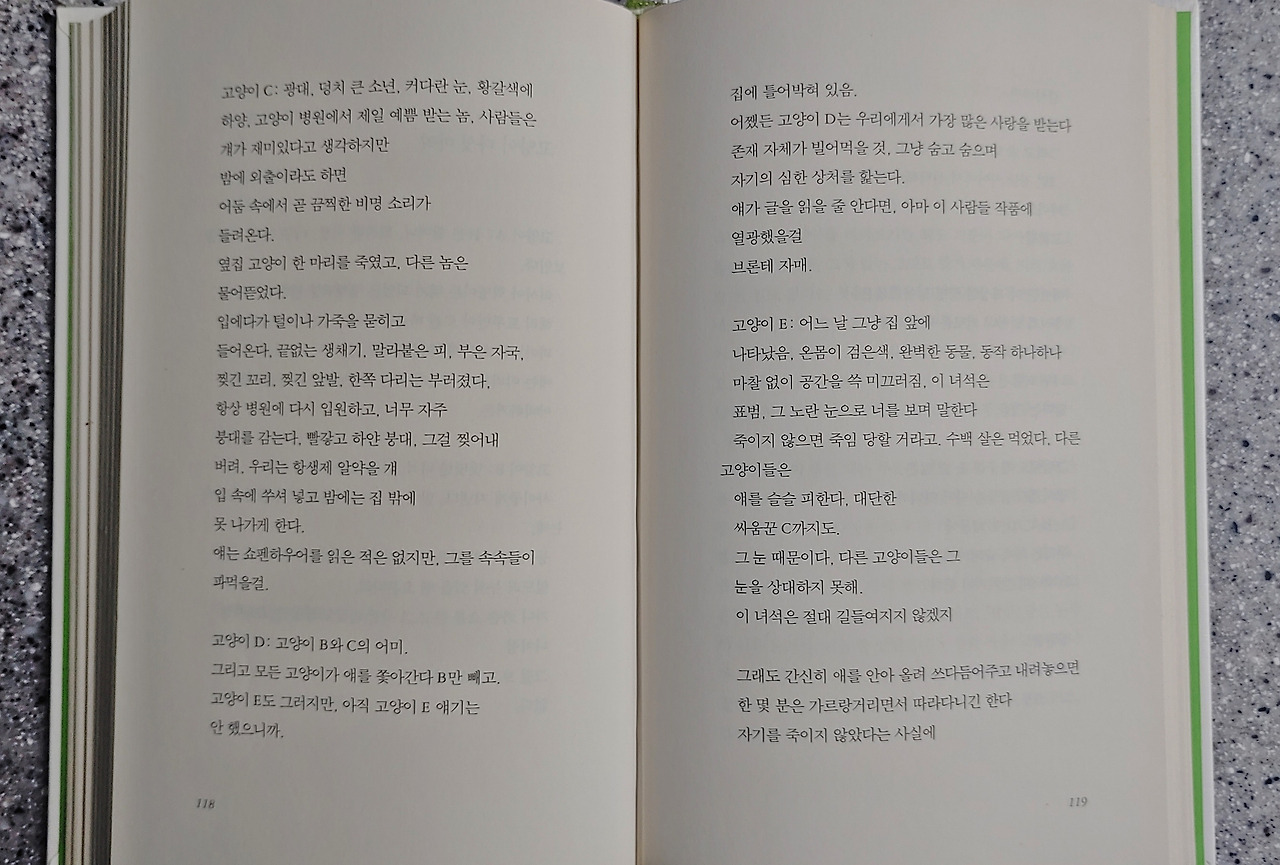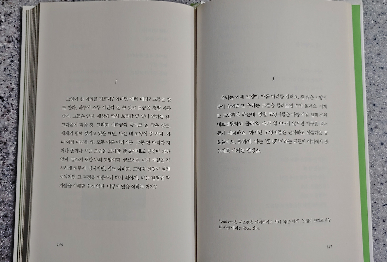 부코스키는 고양이들을 바라보며 삶의 괴로움과 끈질긴 생명력에 대해 놀라며 감탄했다.