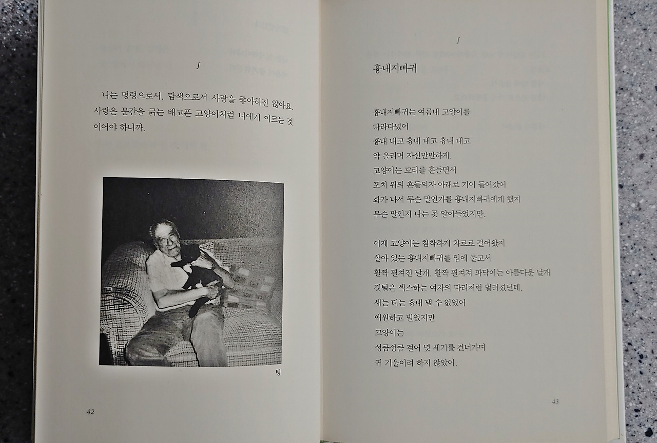 부코스키는 고양이들을 향해 각별하고 섬세하며 다정한 관심을 갖는다.